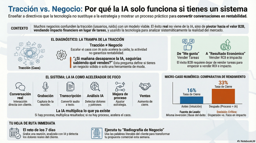 Vamos a hablar de por qué la tracción no es negocio y de cómo la Inteligencia Artificial, sin un sistema detrás, solo sirve para acelerar el caos.